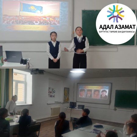 Абай облысы білім басқармасының Аягөз ауданы білім бөлімінің №1 Ақшәулі жалпы орта білім беретін мектебі" КММ -де “Адал Азамат” Біртұтас тәрбие бағдарламасы аясында "Бірлік және ынтымақ айы" құндылығына негізделген 15 желтоқсан күні 5 "А" сыныбында «Тәуелсіз Қазақстанның қалыптасу тарихы» атты бірыңғай сынып сағаты өтті.