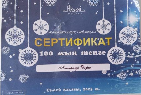 “Адал Азамат” Біртұтас тәрбие бағдарламасы аясында “Бірлік және ынтымақ айы” құндылығына негізделген 25 желтоқсан күні Абай облысы әкімі атынан ұйымдастырылған Жаңа жылдық шырша мерекесіне Абай облысы білім басқармасының Аягөз ауданы білім бөлімінің “№1 Ақшәулі жалпы орта білім беретін мектебі” КММ-нің 8 сынып оқушысы Аманкелді Олжас Сұңқарұлы қатысты. Сыйлыққа 100 000 теңгелік СЕРТИФИКАТ табысталды.