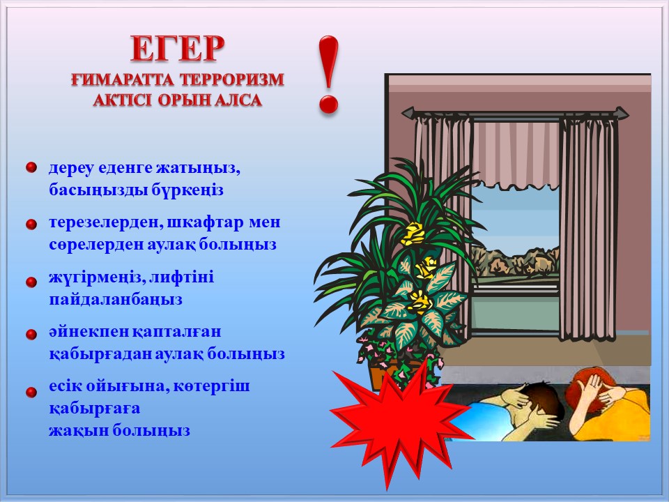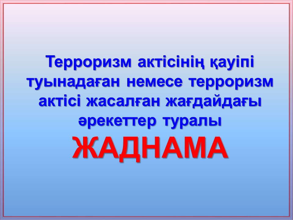 Терроризм актісінің қауіпі туынадаған немесе терроризм актісі жасалған жағдайдағы әрекеттер туралы ЖАДНАМА