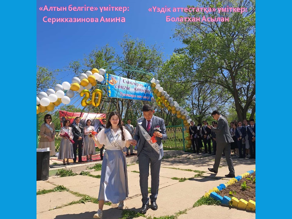 Мектеп бітіру салтанатына Ақшәулі ауылдық округінің әкімі Тортаев Жәнібек Нұрлыбекович, ардагер ұстаз Нурахметова Гулнар Зейноллиновна қатысты. Салтанатты жиынның алғашқы сөзін мектеп директоры Еркинбаев Дархан Даулетбекович бастап, құттықтау сөз сөйледі. Мектеп қызметкерлерін, ата-аналарды марапаттау рәсімі өтті. 47 озат оқушы мақтау қағазымен марапатталды. Түлектерімізге ұлттық біріңғай тестілеуді табысты тапсыруларына тілектеспіз!