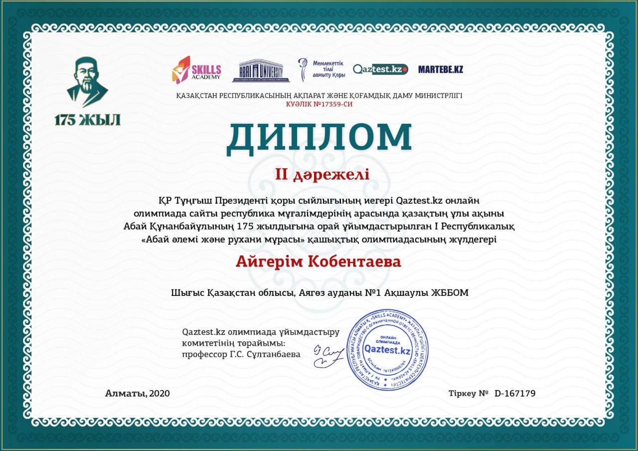Абай облысы білім басқармасының Аягөз ауданы білім бөлімінің «№ 1 Ақшәулі жалпы орта білім беретін мектебі»
